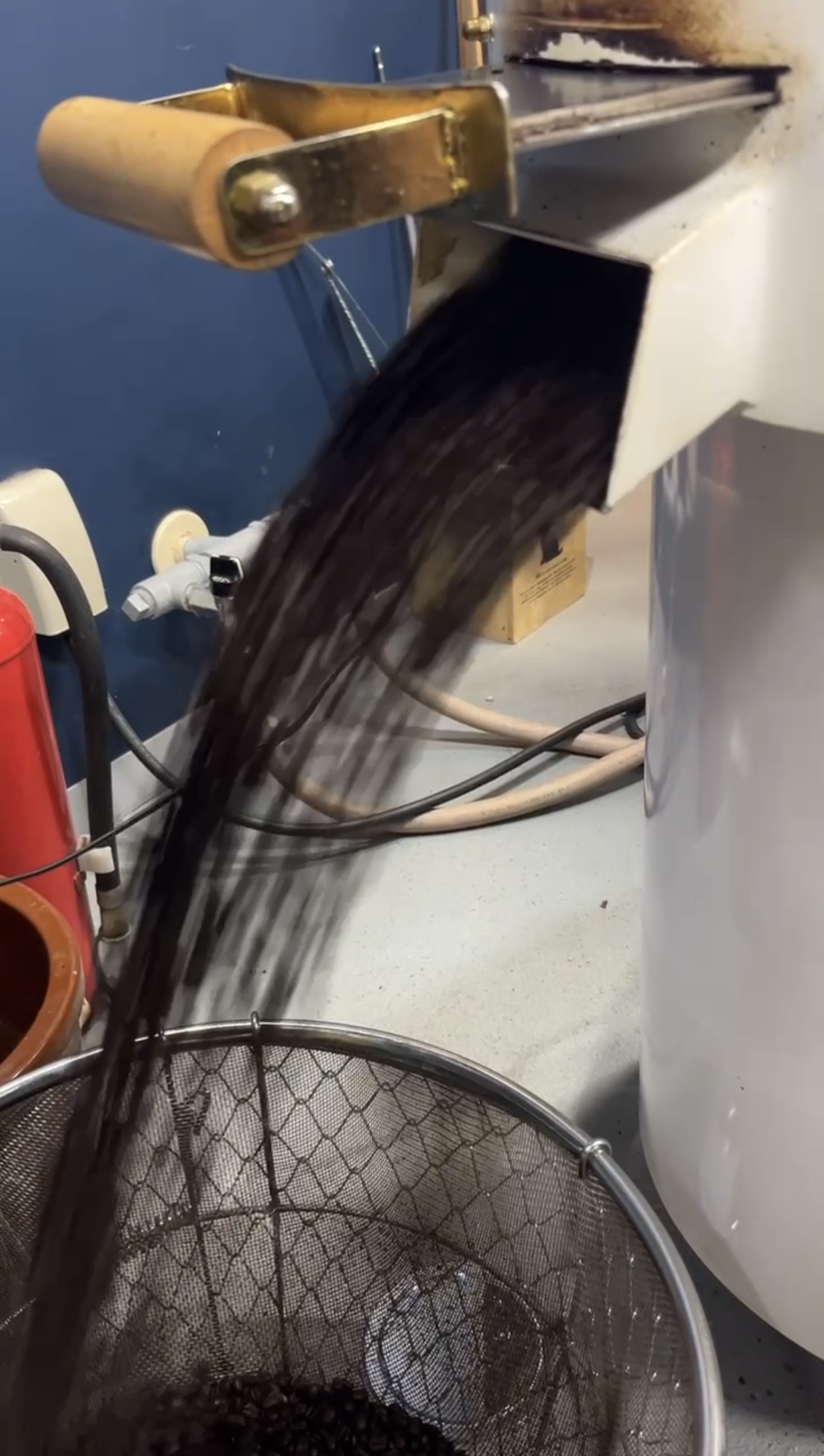 焙煎した豆はすぐに冷却します