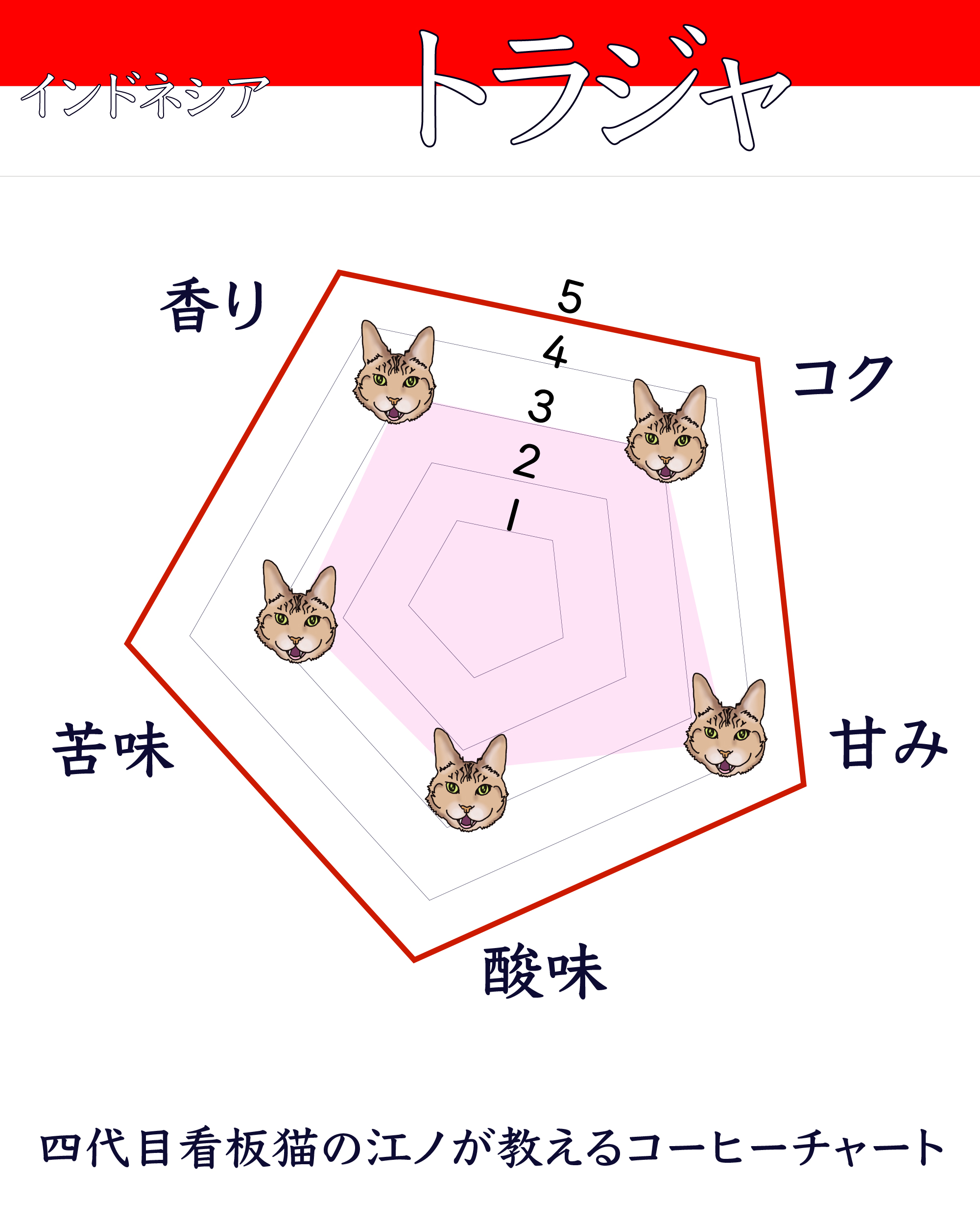 インドネシア共和区にあるスラウェシ島には、ランテカルアという山があります。この山は標高2,300mあり、1,450m~1,600mの裾野でコーヒーチェリーは育っています。日中と夜間の温度差が20度近くあり、これが美味しいコーヒーチェリーを作る条件になっています。ティピカとブルボンの交配種で有機JAS認証を受けており、天日乾燥は毎日手作業で攪拌されます。