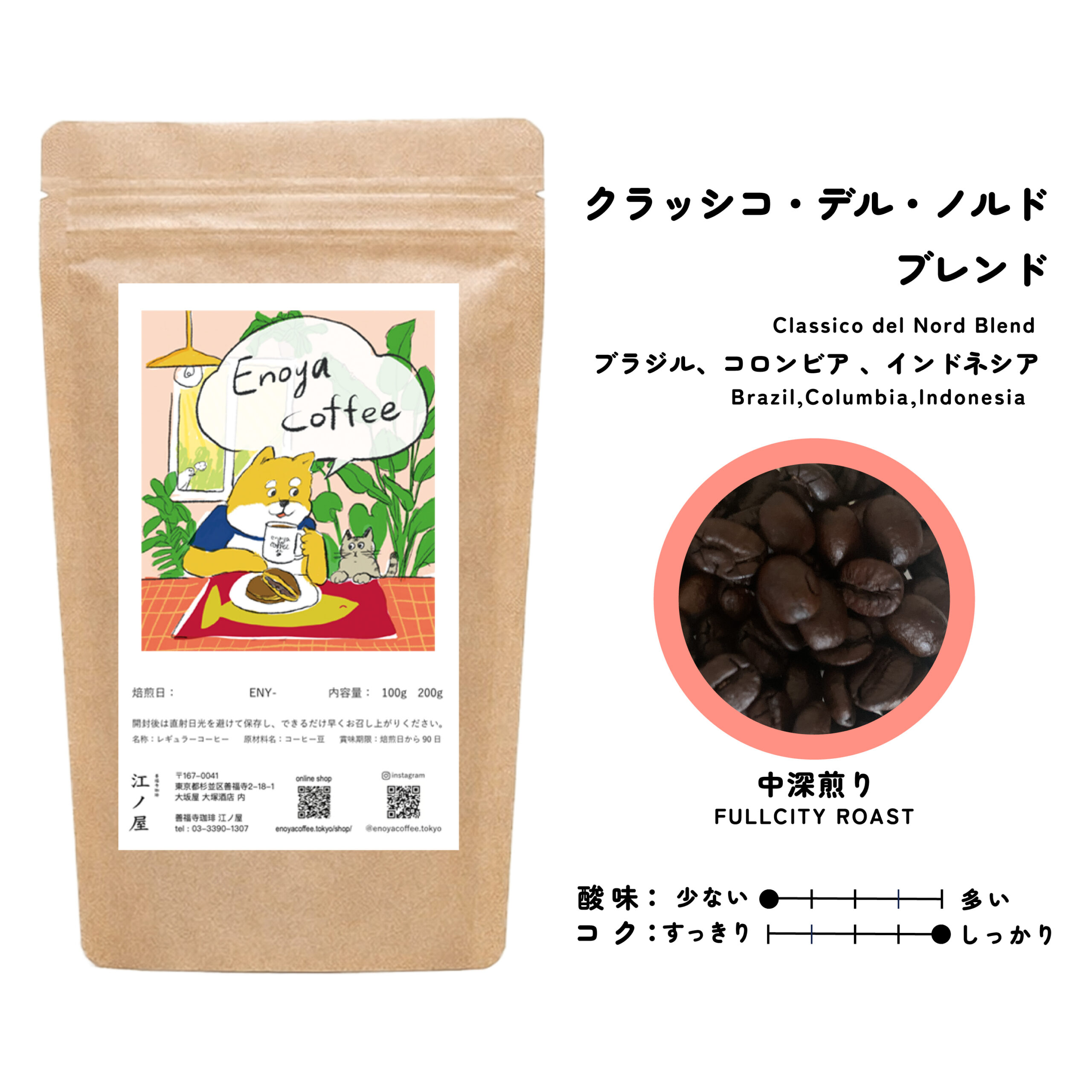 This dark-roasted blend combines coffees from Brazil, Colombia, and Indonesia. Inspired by a short espresso enjoyed at a small bar in northern Italy, the roast is taken deep while carefully controlling bitterness to keep sweetness forward. Ripe banana-like richness and a dense body define the cup. Thanks to the aromatic lift from a Bourbon-based Brazilian component, it is also surprisingly satisfying as a hand drip.