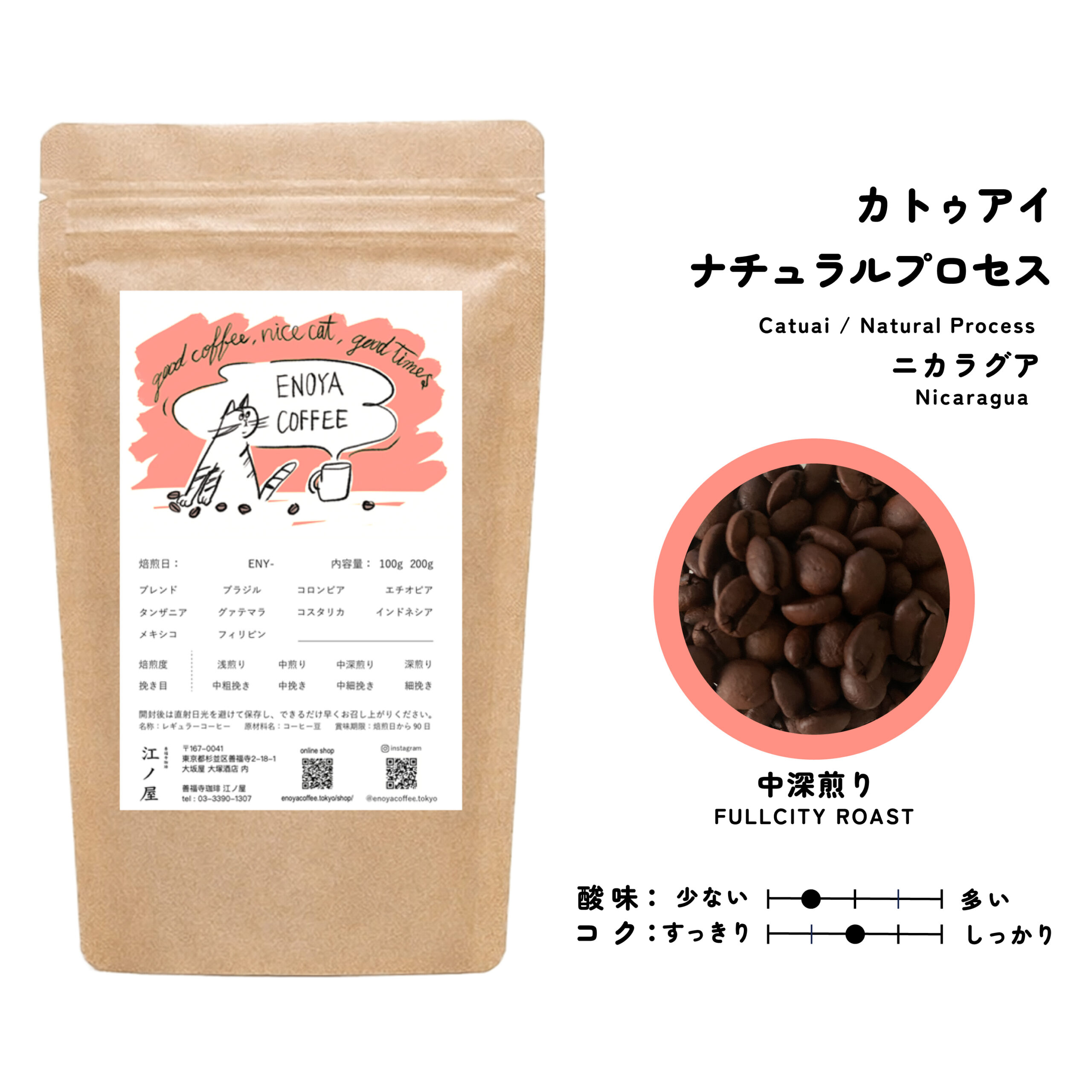 ニカラグア産カトゥアイをフルシティに焙煎しました。